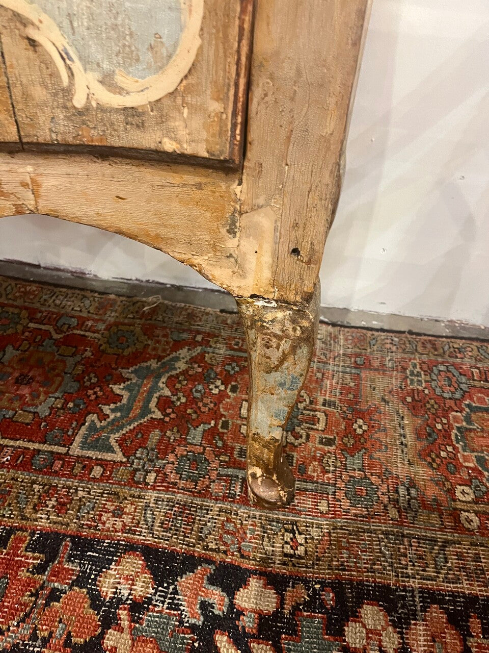 Pair of Exceptional 18th Century Italian Painted Commodes with serpentine fronts with 2 large drawers over a shaped apron on cabriolet legs. Beautiful patina. Very solid pair.